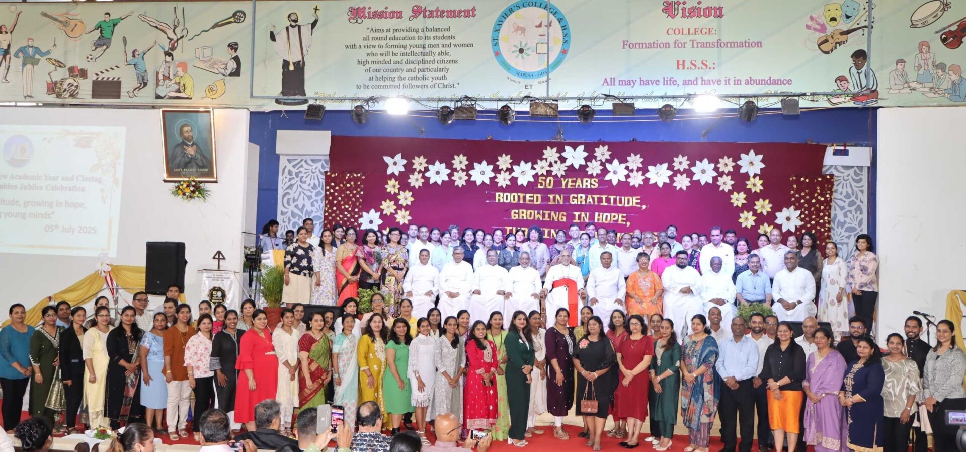 St. Xavier’s Higher Secondary School, Mapusa witnessed a significant milestone on Saturday, 5th July 2025, as His Eminence Most Rev. Filipe Neri Cardinal Ferrao, Archbishop of Goa and Daman, inaugurated the New Academic year 2025-26 and officially concluded the Golden Jubilee Celebrations of the Institution. To mark the occasion, the newly developed Multipurpose Ground and Fitness Zone were blessed by His Eminence.