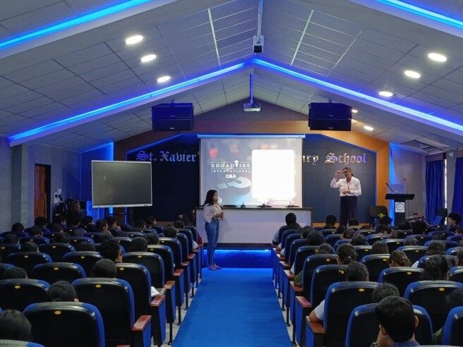 An orientation session was conducted by EduAdvise International Goa, for the students of Std. XII Arts on 20th September 2025, at 11:30 a.m. in the St. Joseph Vaz Auditorium of St. Xavier’s H.S.S., Mapusa, Goa.