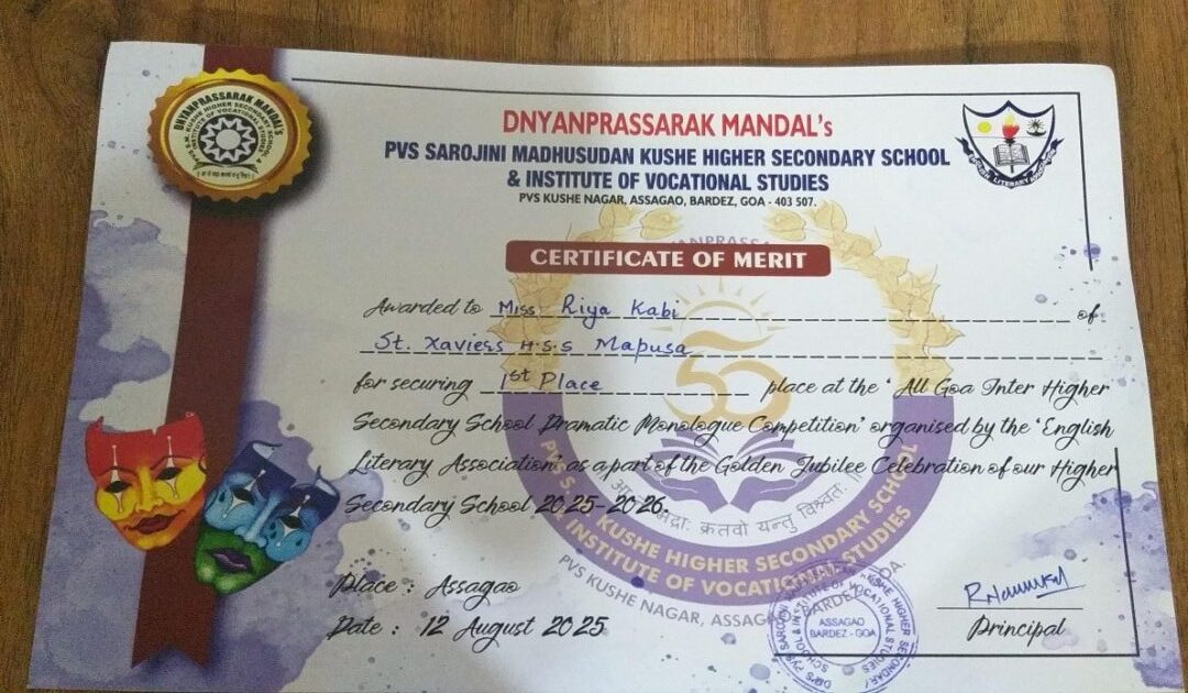 DM’s PVS.M Kushe Higher secondary school and Institute of vocational studies, Assagao oraganised an All Goa Inter-Higher secondary English Dramatic Monologue competition on 12th august 2025 .