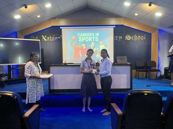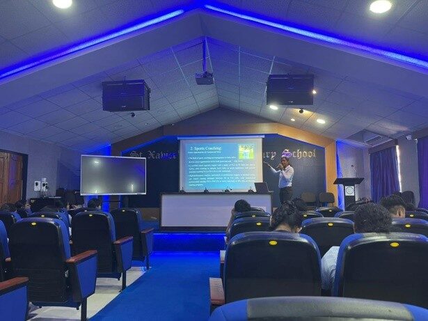 A Career Guidance Talk on Careers in Sports was conducted at St. Xavier’s Higher Secondary School, Mapusa on Saturday, the 16th of August, 2025, in the St. Joseph Vaz Auditorium at 11:30 a.m, for the students of 12th Arts. The session was led by Mrs. Melinda Pereira, a former Physical Education teacher of the Institution, who spoke on The Careers in Sports. She was warmly welcomed by the student host, Vanya, and was later presented with a token of appreciation by Sheryann. During her presentation, Mrs. Melinda highlighted 22 career opportunities in the field of sports, such as Sports Journalism, Sports Nutrition, Athlete Management and Representation, Sports Law, E-Sports, Sports Analytics and many more. She also elaborated on the procedures to attain the certification for these careers and the different avenues through which students could pursue them, in India and abroad.